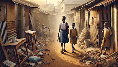 Korogocho im Osten Nairobis ist extrem dicht bewohnt; bis zu 200.000 Menschen leben auf 1,5 km², davon rund 35–45 % Kinder. Viele wachsen in Wellblechhütten mit schlechten Sanitärverhältnissen auf, haben wenig Zugang zu Schule und medizinischer Versorgung und arbeiten nahe der Dandora-Deponie, wo sie verwertbares Material sammeln – oft gesundheitsschädlich. Lokale Initiativen und kirchliche Gruppen bieten Betreuung und Lernangebote und schaffen sichere Anlaufstellen. Zwischen harter Armut und Risiko zeigt sich dennoch eine bemerkenswerte Widerstandskraft der Kinder.
